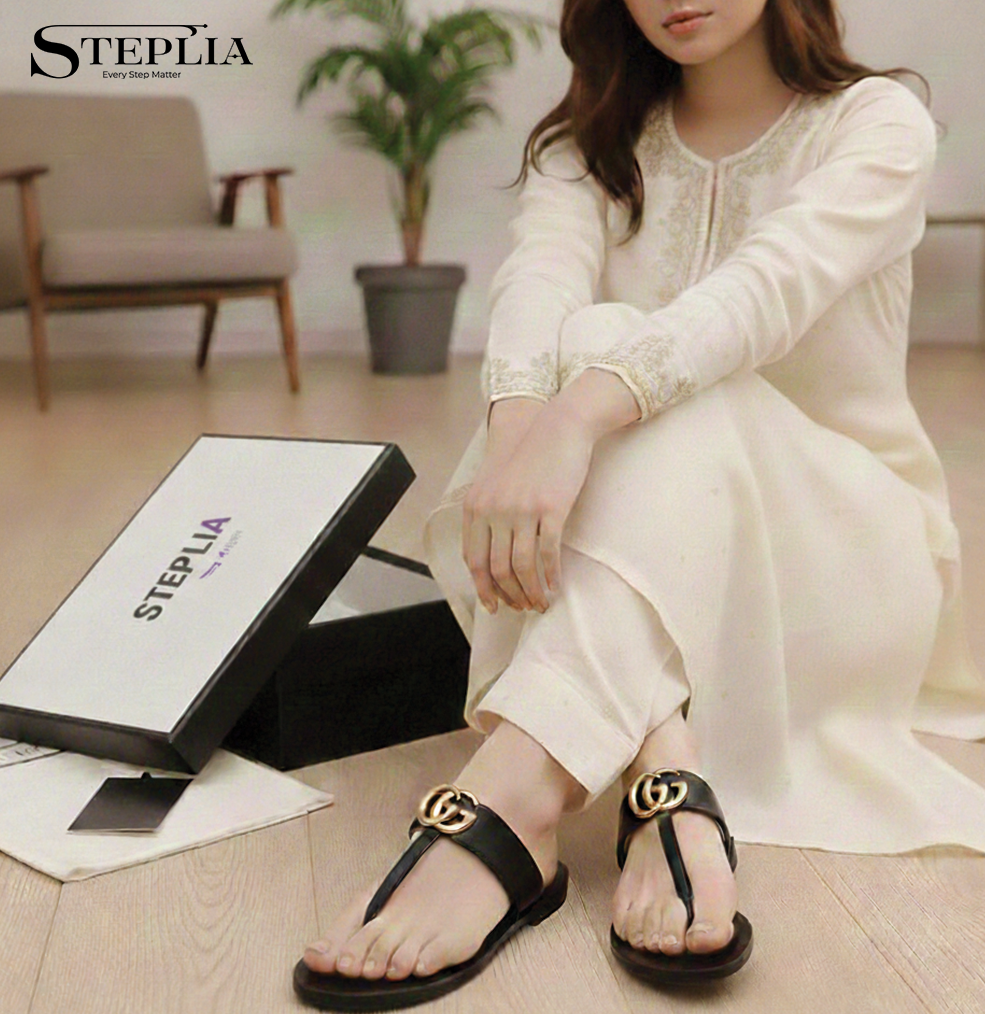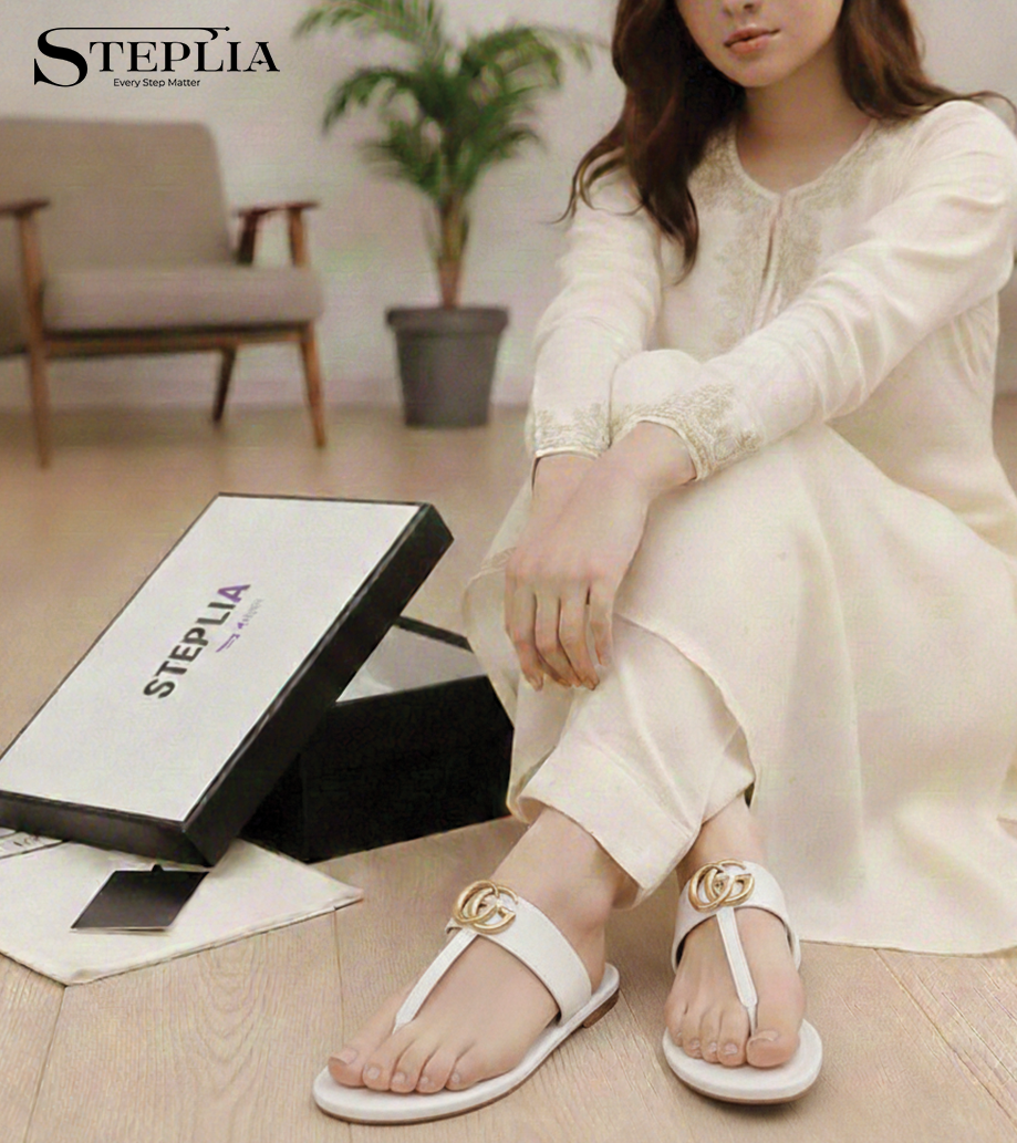 White Designer Ladies Slipper by Steplia – Luxury Flat Sandals for Women